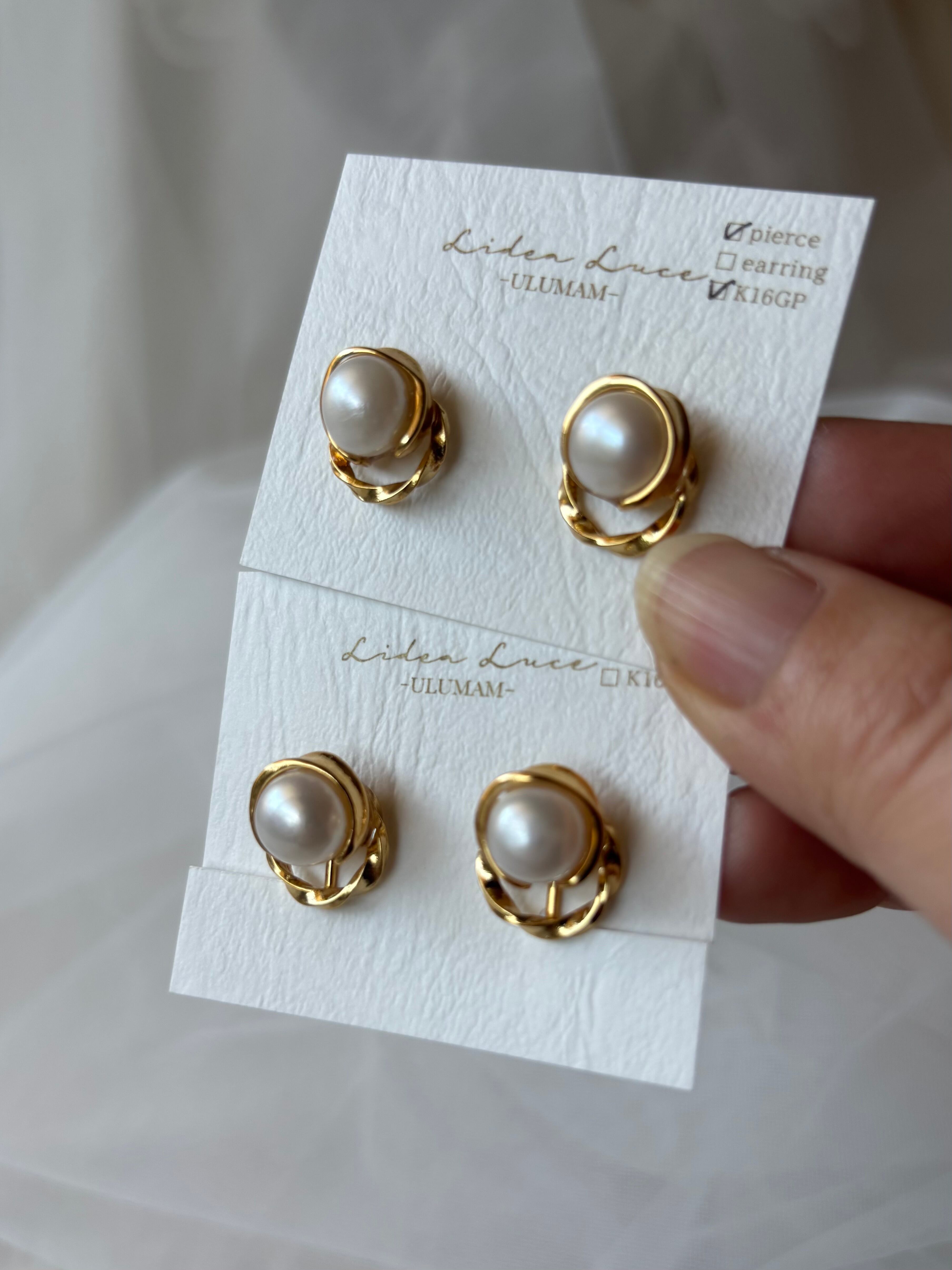 ・淡水パールは穴ありです。できるだけパーツで覆って目立たないようには仕上げておりますが、パールの大きさや穴の場所によっては若干横から見えてしまうことがあります。