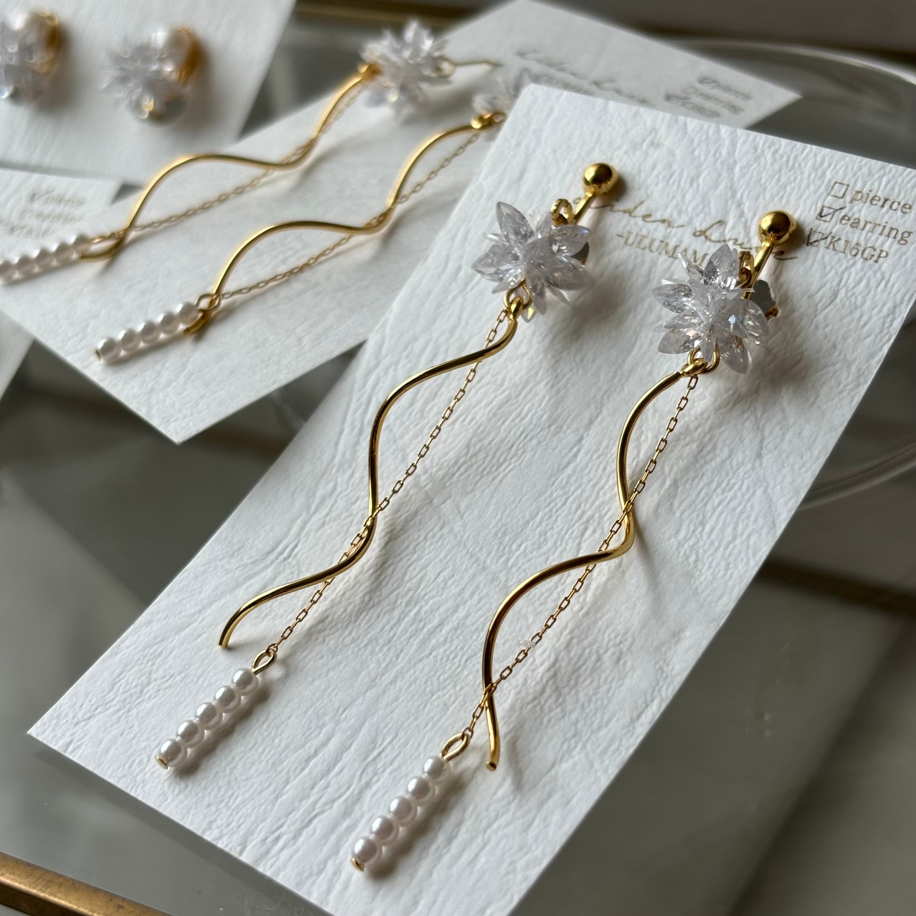繊細に編み込まれたジルコニアのパーツは洗練された印象